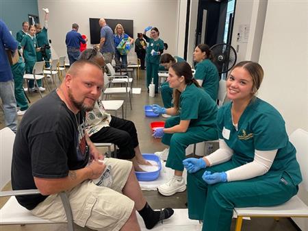 Park Cities Rotary member Holly (Hollenbeck) McKassan has again organized the Footcare Clinic at Austin Street Family Shelter on September 28. Begun in 2022, the goal has been to care for the feet of 130 to 150 people at each one-day Clinic.