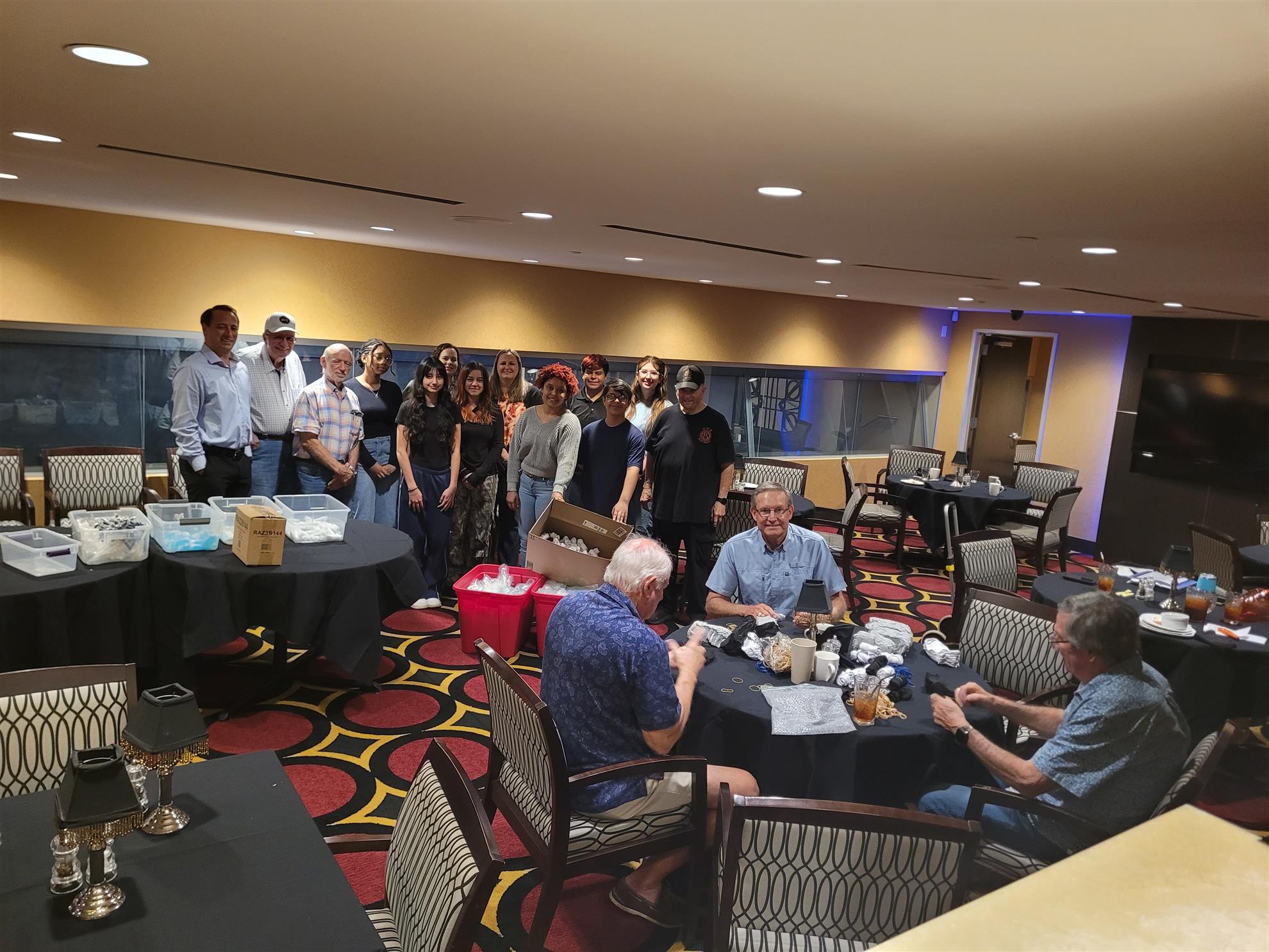 Greenville Daybreak Rotary Club packed hygiene kits and rolled socks at their meeting September 11. The young people from the Key Club (Kiwanis sponsors) helped with the project.