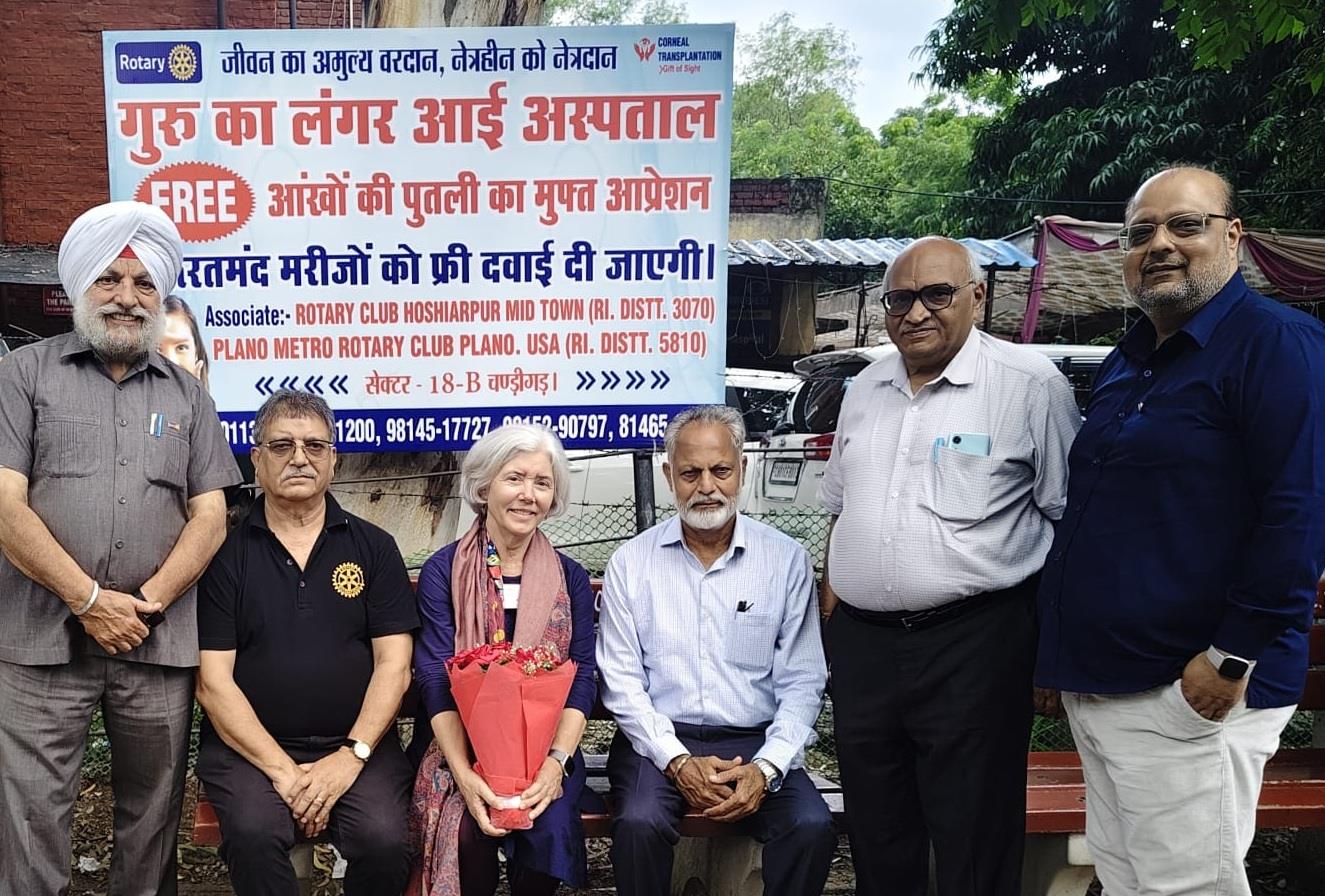 The sign in front of the hospital in India proudly displays the partnership of Rotary District 5810 and Rotary Club Hoshiarpur Mid Town—a visible reminder of the global impact made possible through Rotary service.