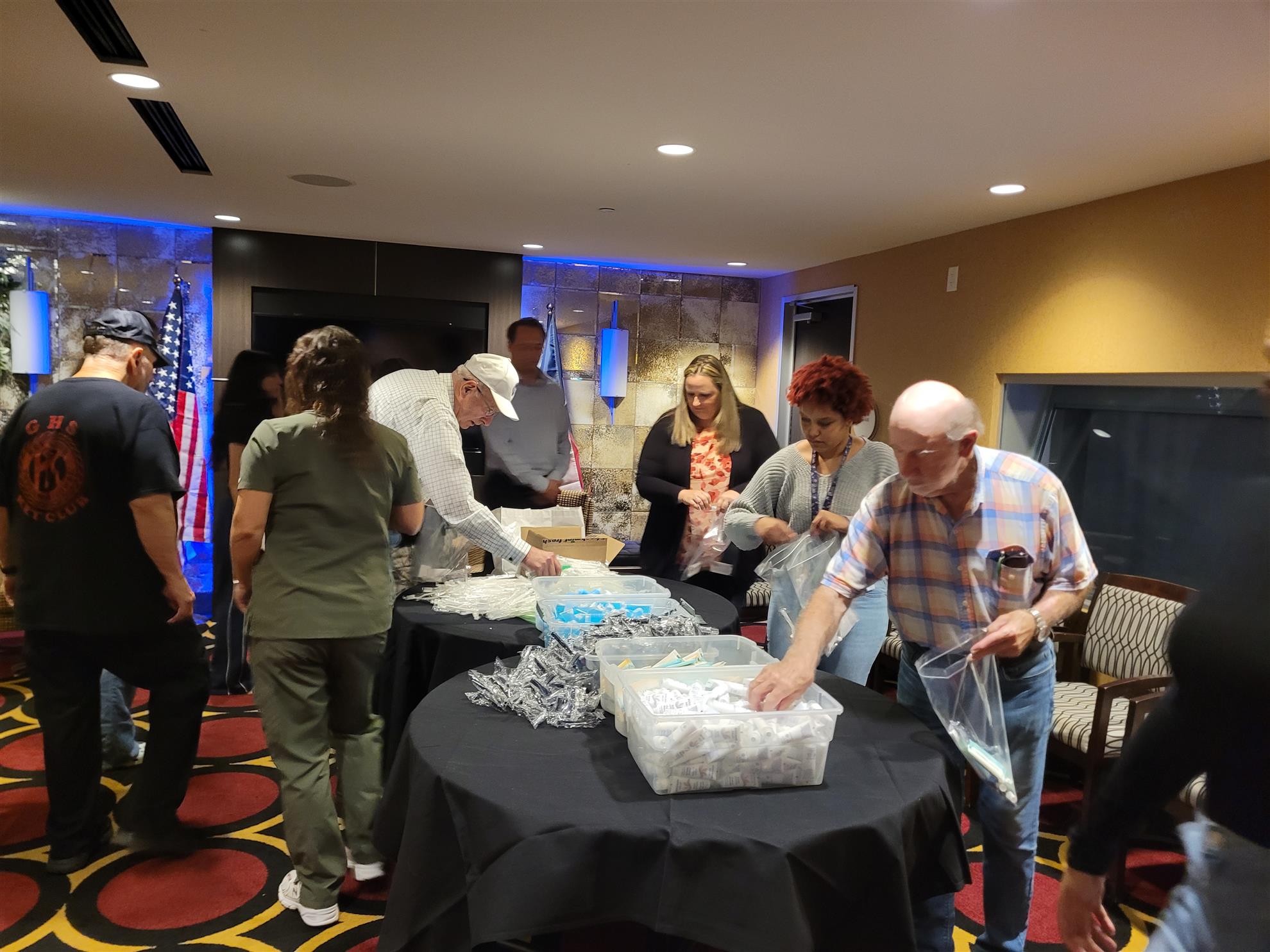 Greenville Daybreak Rotary Club packed hygiene kits and rolled socks at their meeting September 11. The young people from the Key Club (Kiwanis sponsors) helped with the project.