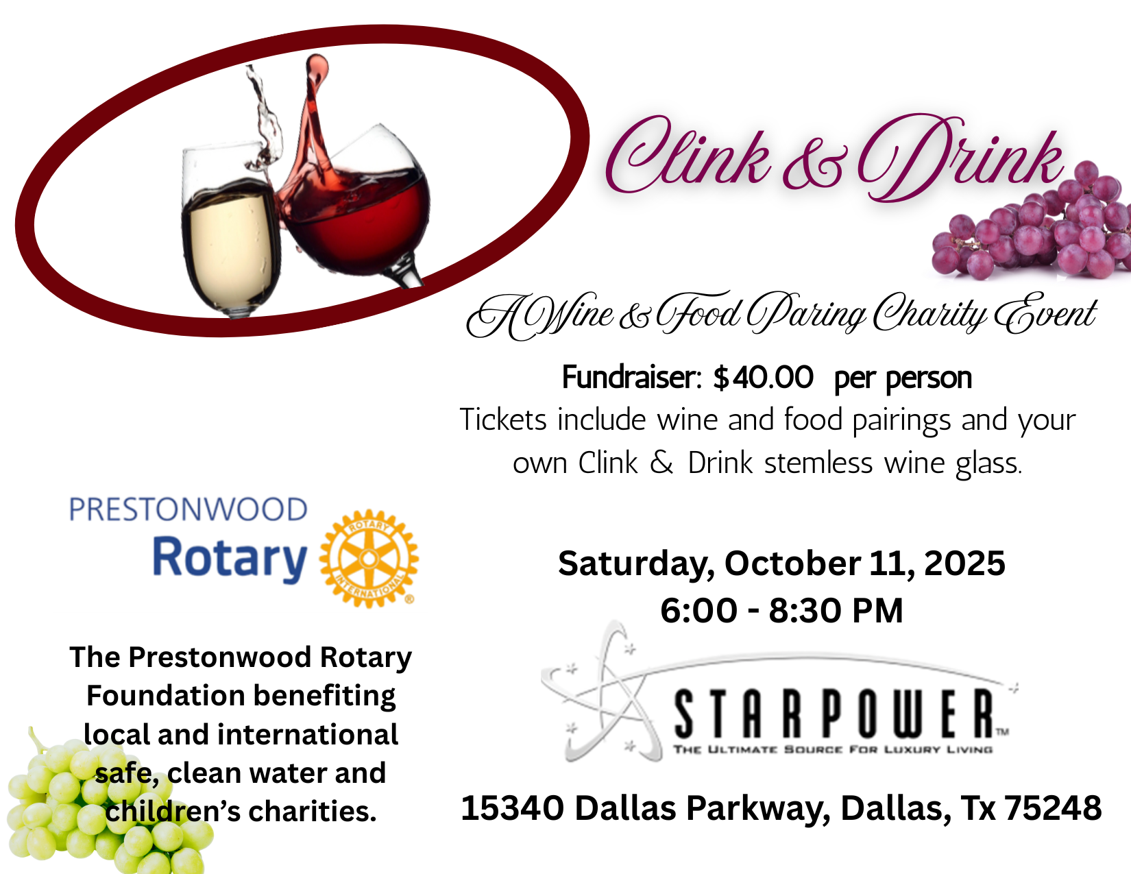 Join us for a fun evening of food, drinks, and friendship at our annual Clink & Drink event on October 11, 2025. Starpower provides an extraordinary experience, and this event enhances that. Tickets are $40/per person. Buy in advance.