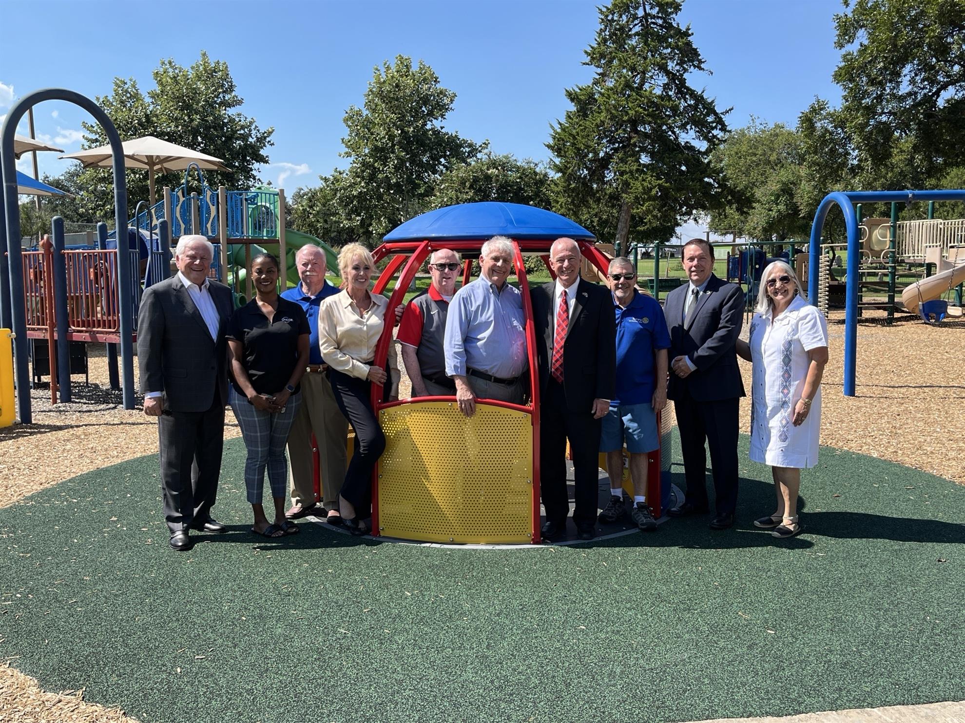 This week, the Rotary Club of Carrollton-Farmers Branch celebrated another milestone at Gussie Field Waterworth Park—better known as Farmers Branch Rotary Playground. Eight years ago, the club partnered with the City of Farmers Branch to raise more than $175,000 to build this all-accessible playground, ensuring children of all abilities could enjoy a safe and inclusive place to play.