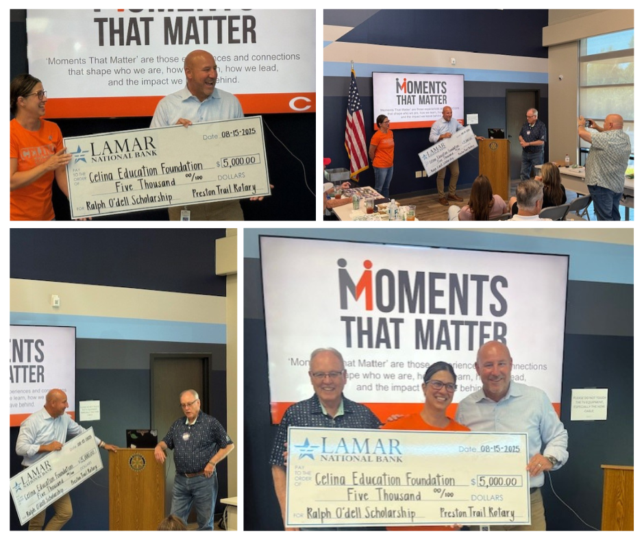 At a recent meeting, Preston Trail Rotary had the privilege of honoring one of its most cherished members, Ralph O’Dell. In partnership with Celina ISD, the club presented Superintendent Dr. Tom with a $5,000 check to establish the Ralph O’Dell Scholarship.