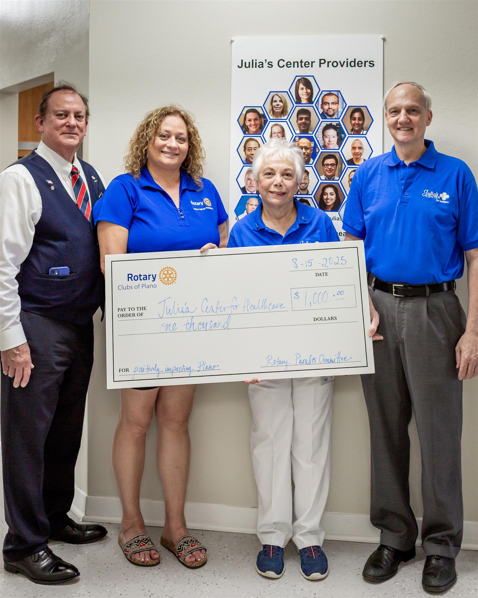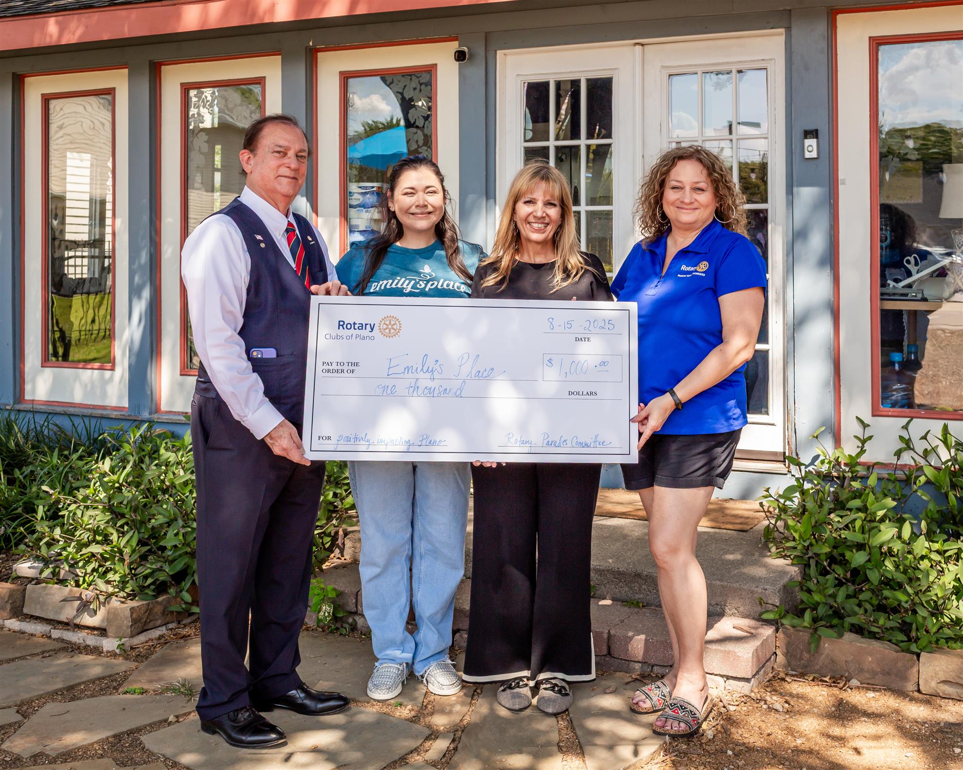 The Rotary Parades of Plano organizing committee, comprised of members from Plano-area Rotary Clubs, is proud to support our local nonprofits. With a portion of the proceeds from registration fees and sponsorships of the Plano parades, the committee made three donations in August of $1,000 each to organizations positively impacting Plano residents through Rotary’s areas of focus.